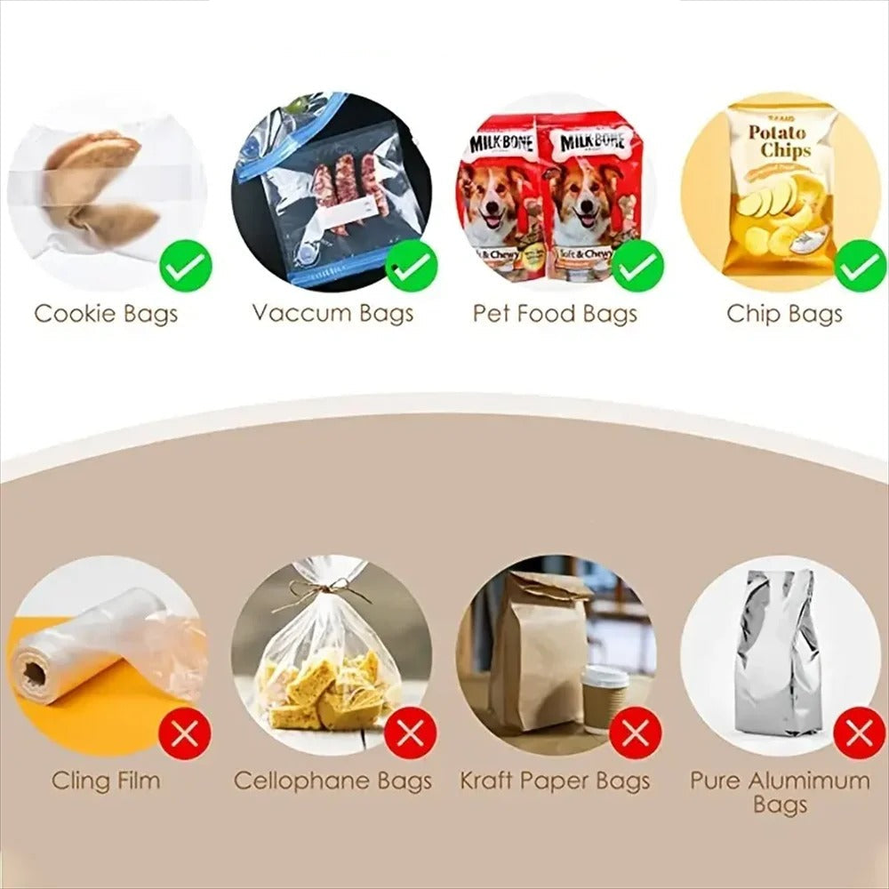 Works seamlessly on all heat-sealable plastic bags — from snack pouches to freezer packs and beyond.